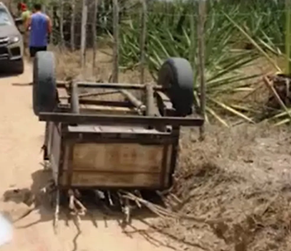 Reboque carregado de madeira virou contra corpo de agricultor de 50 anos na zona rural de Conceição do Coité, a cerca de 200 km de Salvador. — Foto: Reprodução/Calila Notícias