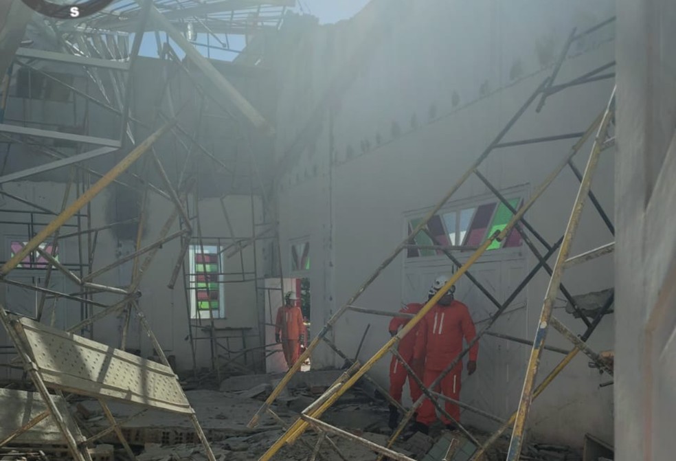 Catorze pessoas ficam feridas após teto de igreja desabar no sudoeste da Bahia — Foto: Corpo de Bombeiros