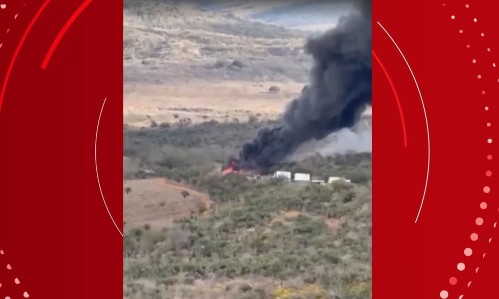 A carreta que pegou fogo causou um grande incêndio na região. Uma nuvem de fumaça escura se ergueu do veículo incendiado e ofuscou a visibilidade na pista.