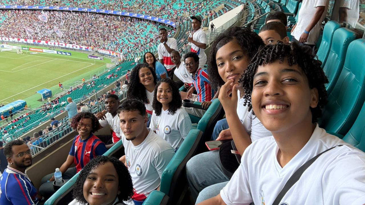 Acompanhados pelo prefeito Jocivaldo dos Anjos, os jovens circularam pelo estádio, registraram cada detalhe nos celulares e, nas arquibancadas, soltaram a voz como torcedores veteranos. Em campo, o Bahia empatou em 2 a 2 com o Esporte Clube Jacuipense. O placar trouxe tensão e emoção até o último minuto, mas não apagou o brilho da partida. Para muitos estudantes, foi a primeira vez em um estádio daquele porte e a sensação era de estar vivendo algo grande.