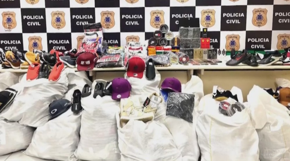 Mais de 13 mil produtos falsificados no Feiraguay são apreendidos pela Polícia Civil — Foto: Reprodução/PC-BA
