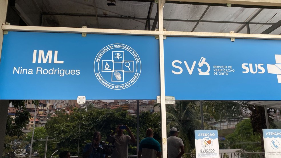 Corpo de Cleber foi levado para o Instituto Médico Legal (IML) de Salvador — Foto: Felipe Costa/TV Bahia