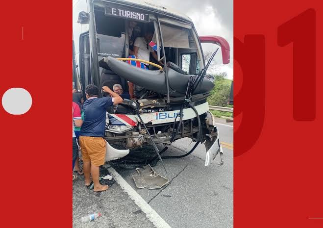 Um ônibus de turismo que transportava uma torcida organizada do Fortaleza Esporte Clube bateu na traseira de uma carreta, em uma rodovia, próximo ao município de Poções, no sudoeste da Bahia.