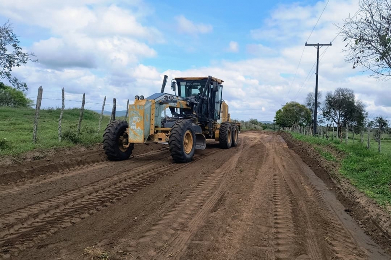 Enquanto isso, n distrito de Jaguara está sendo realizado o patrolamento e encascalhamento da estrada do Mucambo, utilizando uma motoniveladora e uma caçamba truck. Neste mesmo distrito também já vai ser iniciado o patrolamento e o encascalhamento da estrada do Riacho d’Ouro.